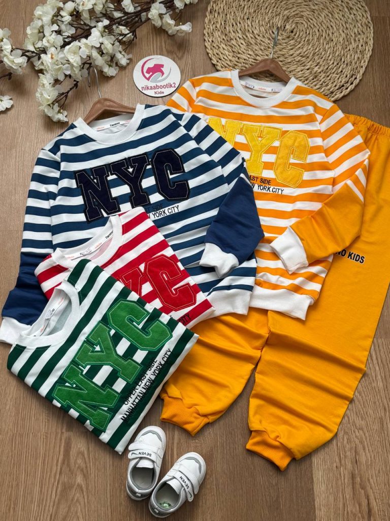 بلوز شلوار جیب خرسی راه راه(ایراددار)