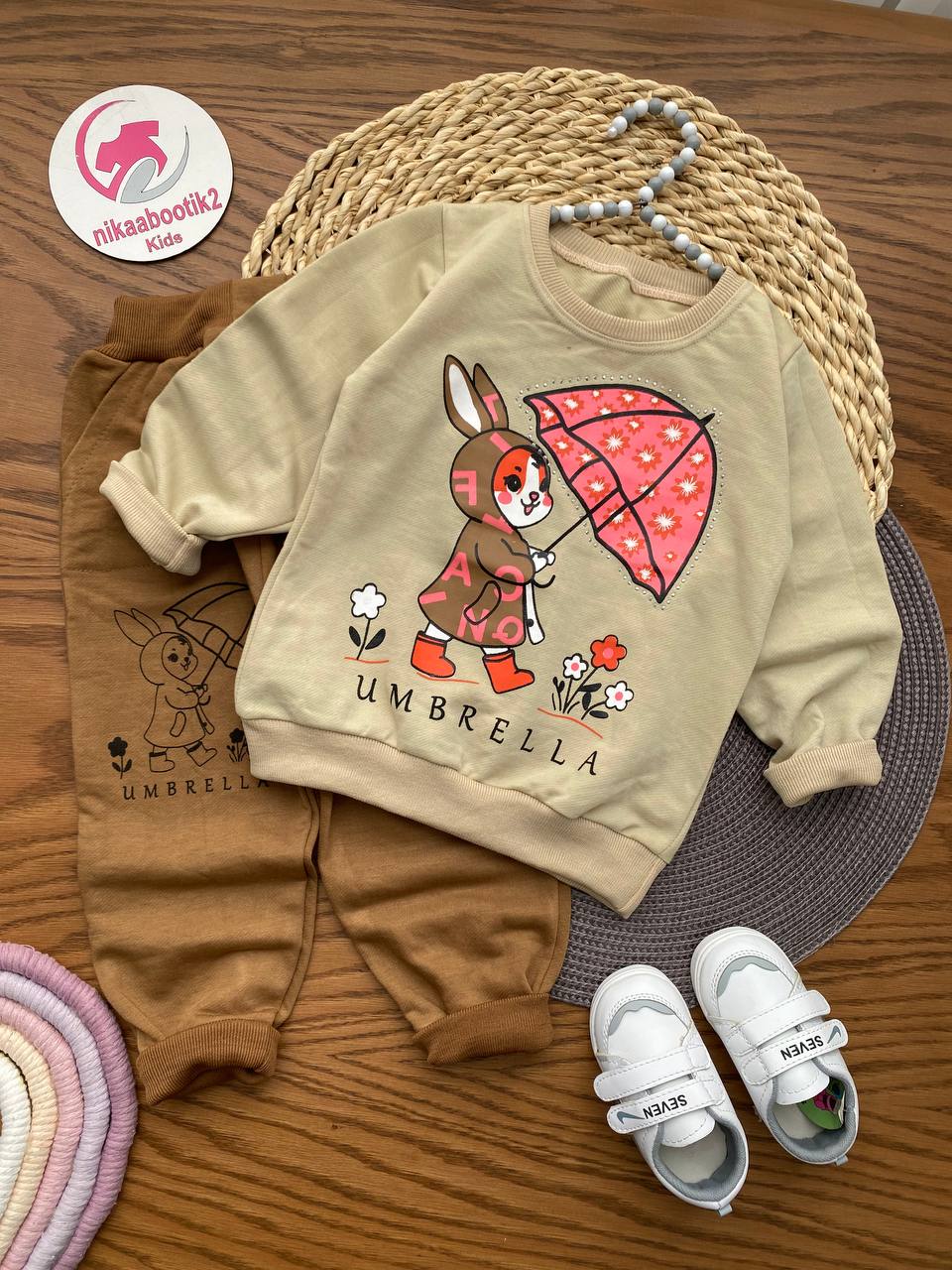 نیکابوتیک » فروشگاه » محصولات دخترانه » بلوز شلوار دخترانه » بلوز شلوار خرگوش و چتر