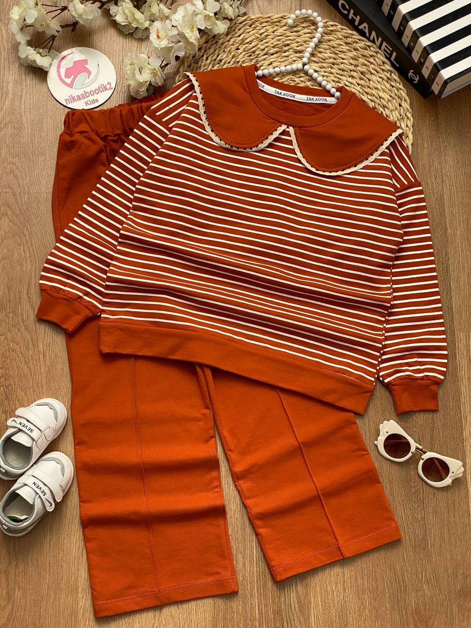 نیکابوتیک > فروشگاه > لباس دخترانه > بلوز شلوار دخترانه > بلوز شلوار راه راه یقه ب ب