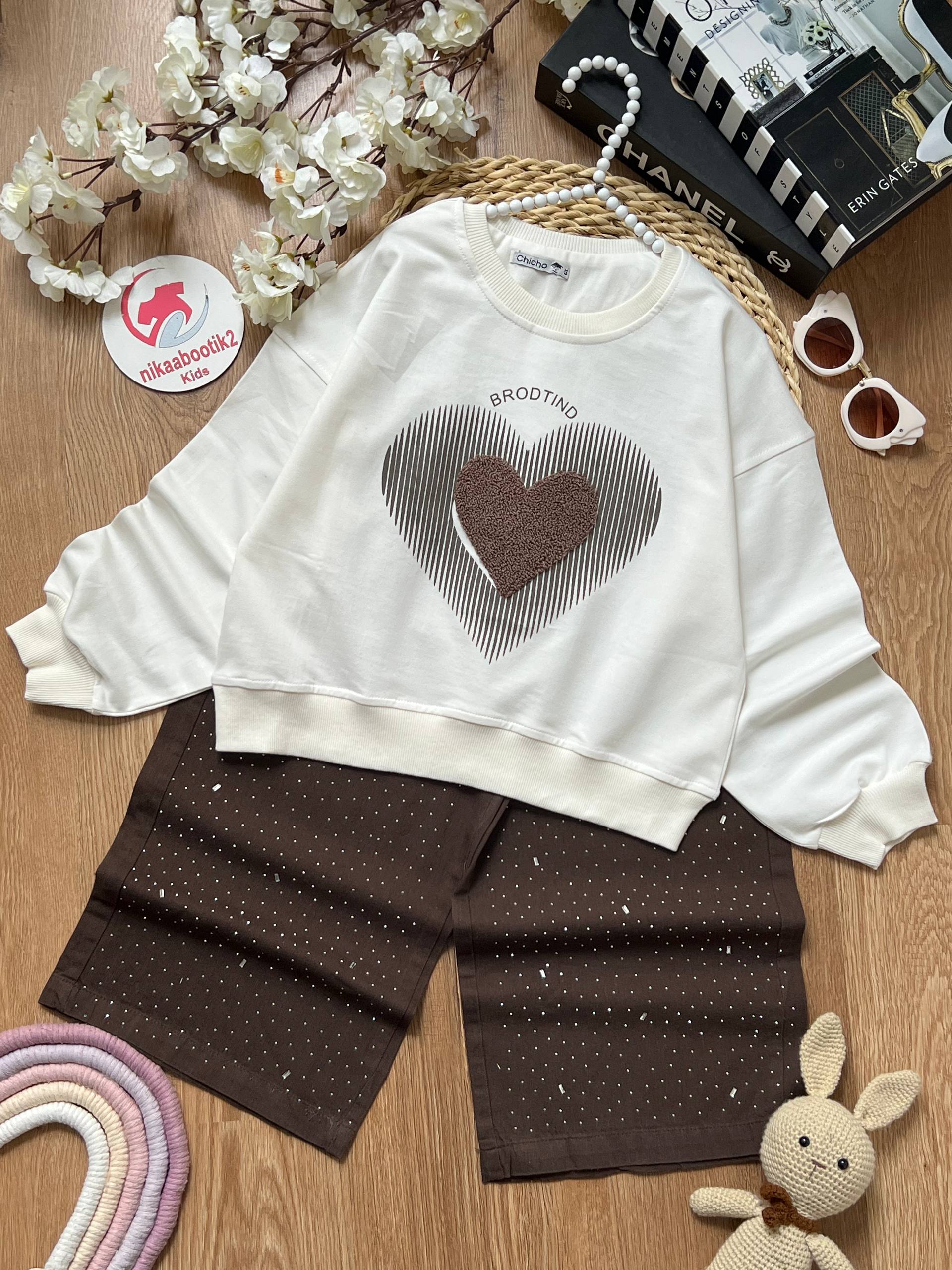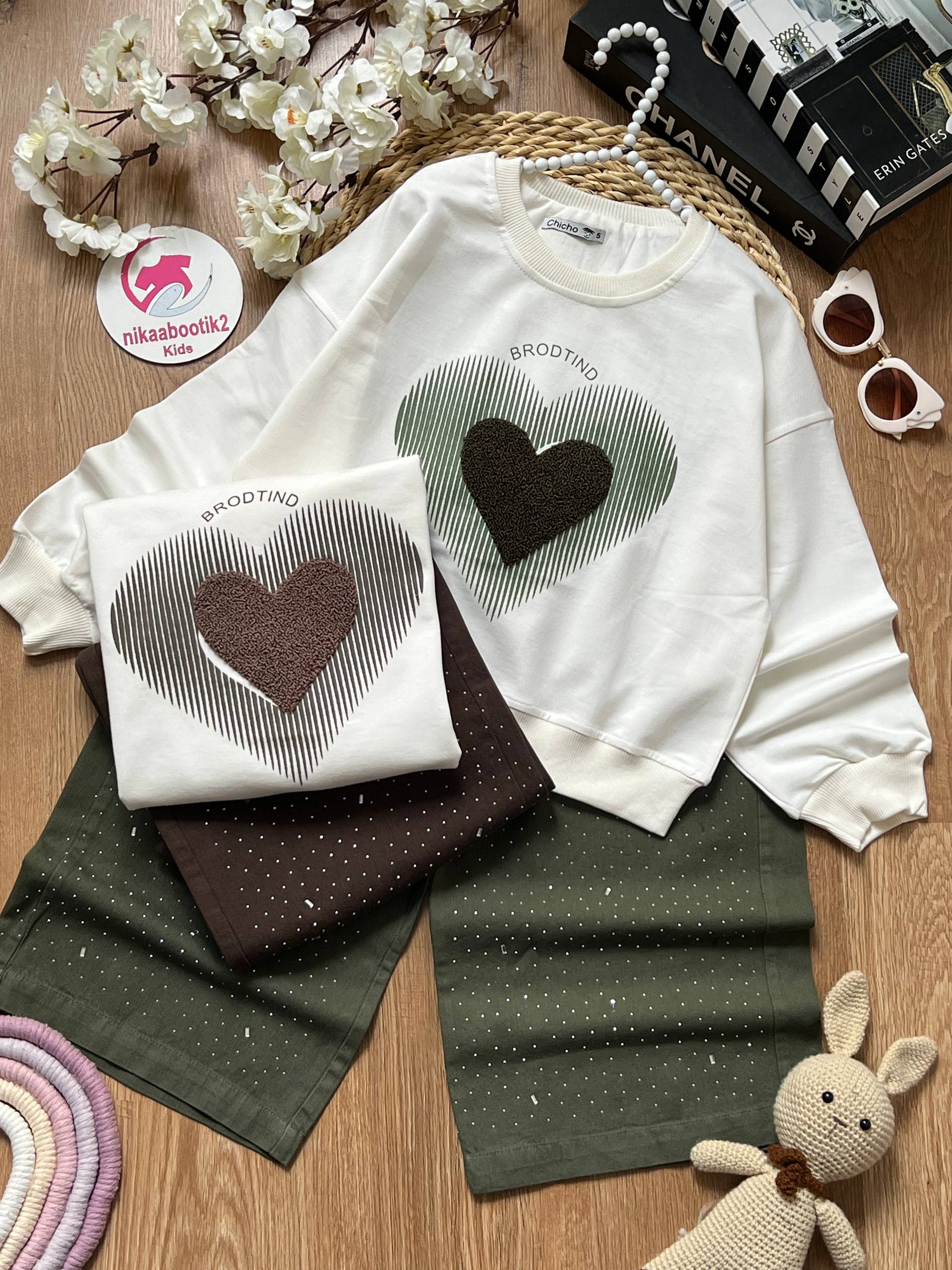 نیکابوتیک > فروشگاه > لباس دخترانه > بلوز شلوار دخترانه > بلوز شلوار قلب پولیشی
