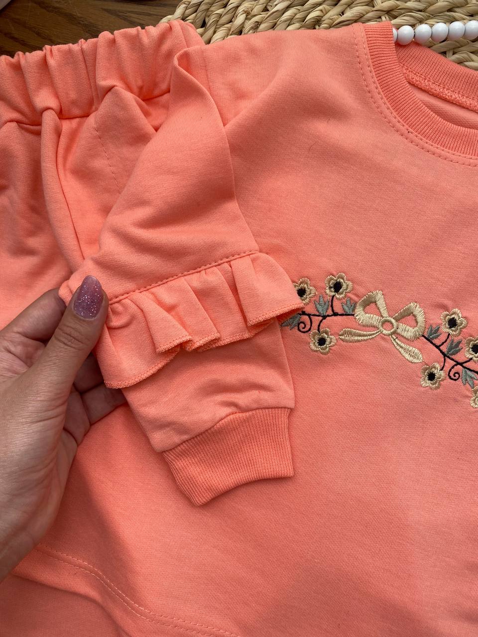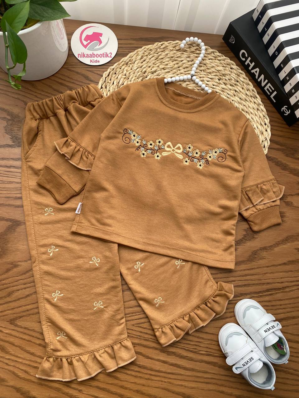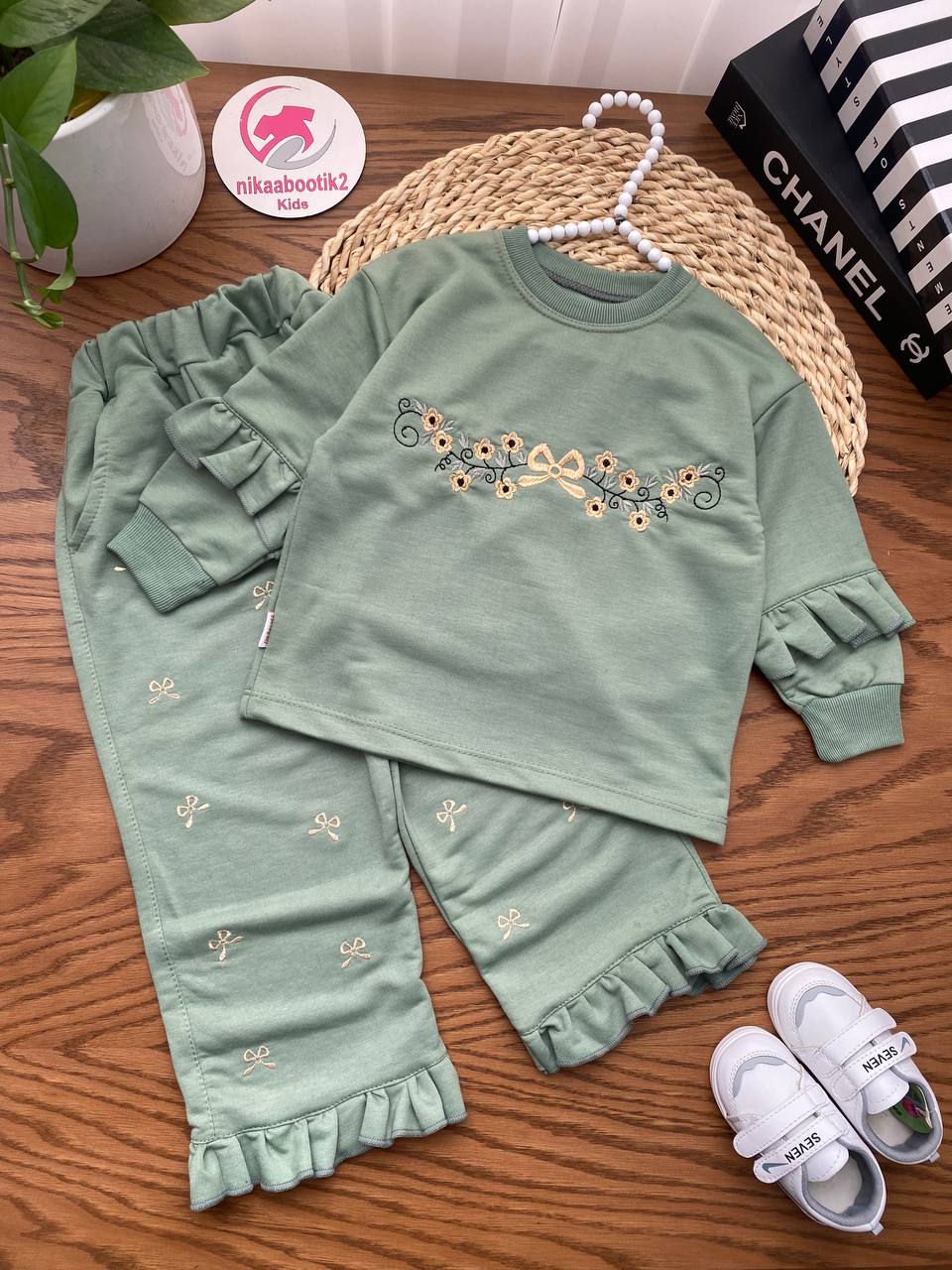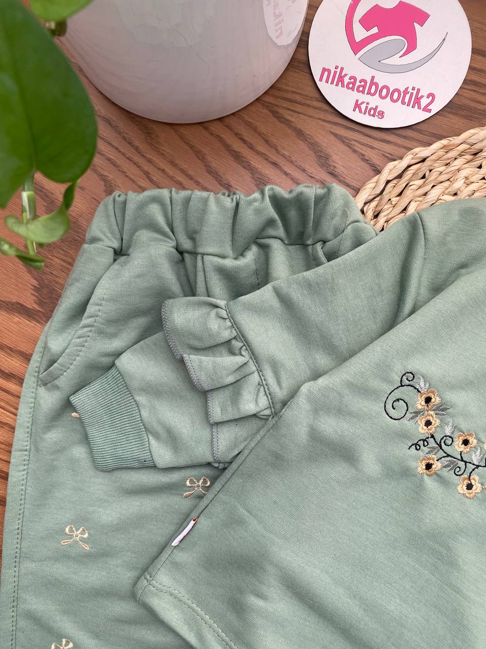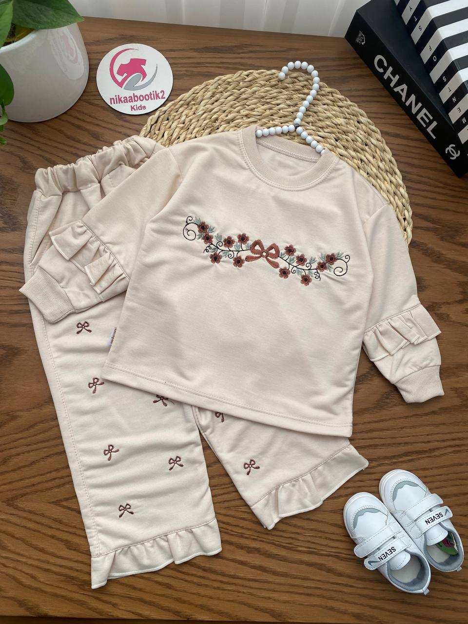 نیکابوتیک > فروشگاه > محصولات دخترانه > بلوز شلوار دخترانه > بلوز شلوار‌ گلدوزی آستین چین