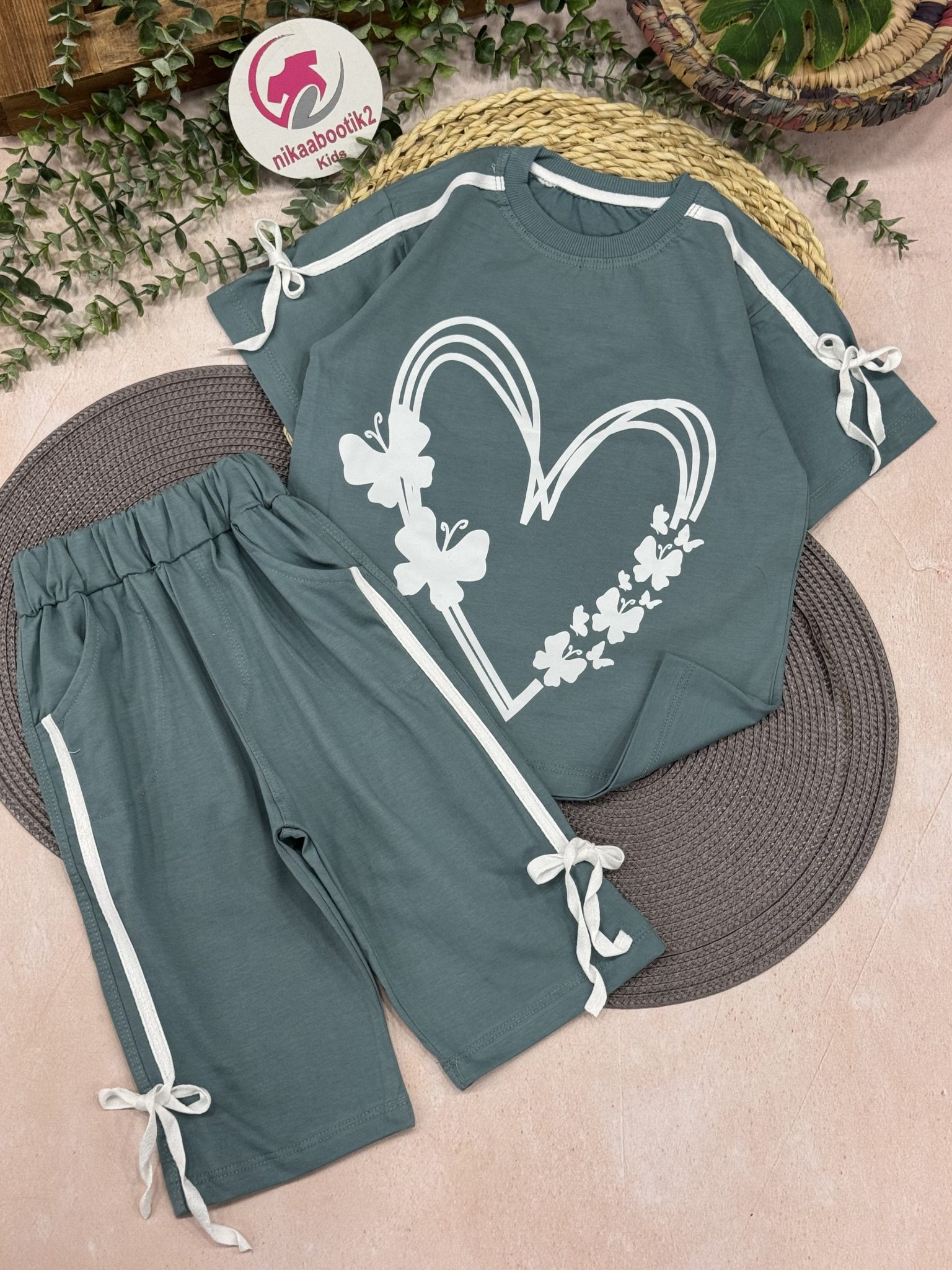 نیکابوتیک > فروشگاه > محصولات دخترانه > تیشرت شلوارک قلب سفید
