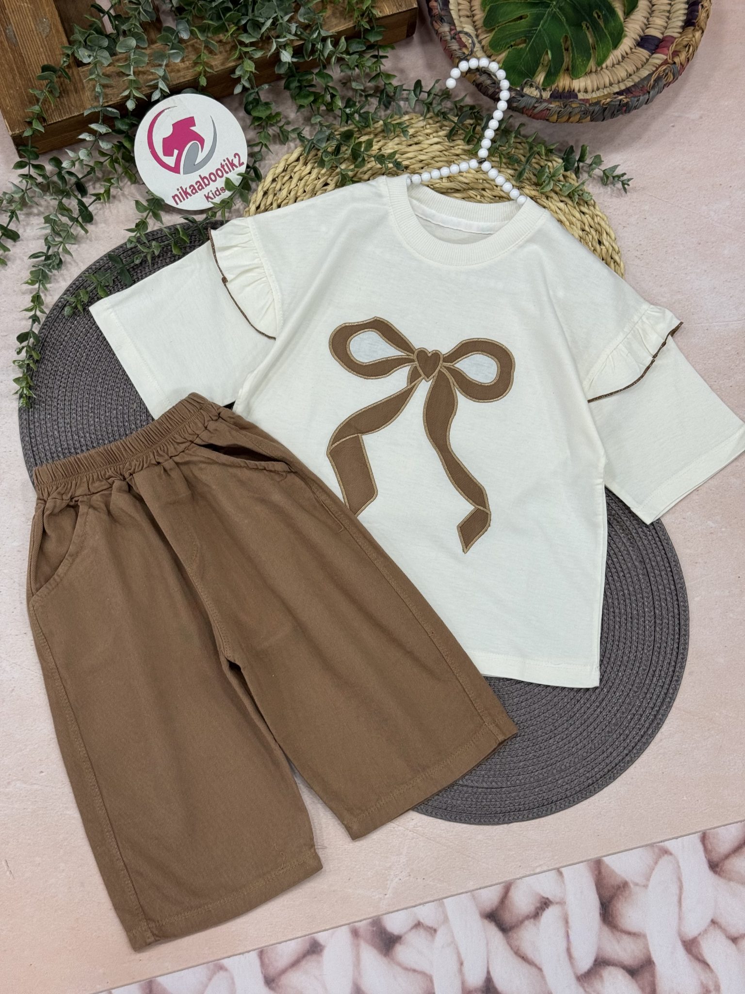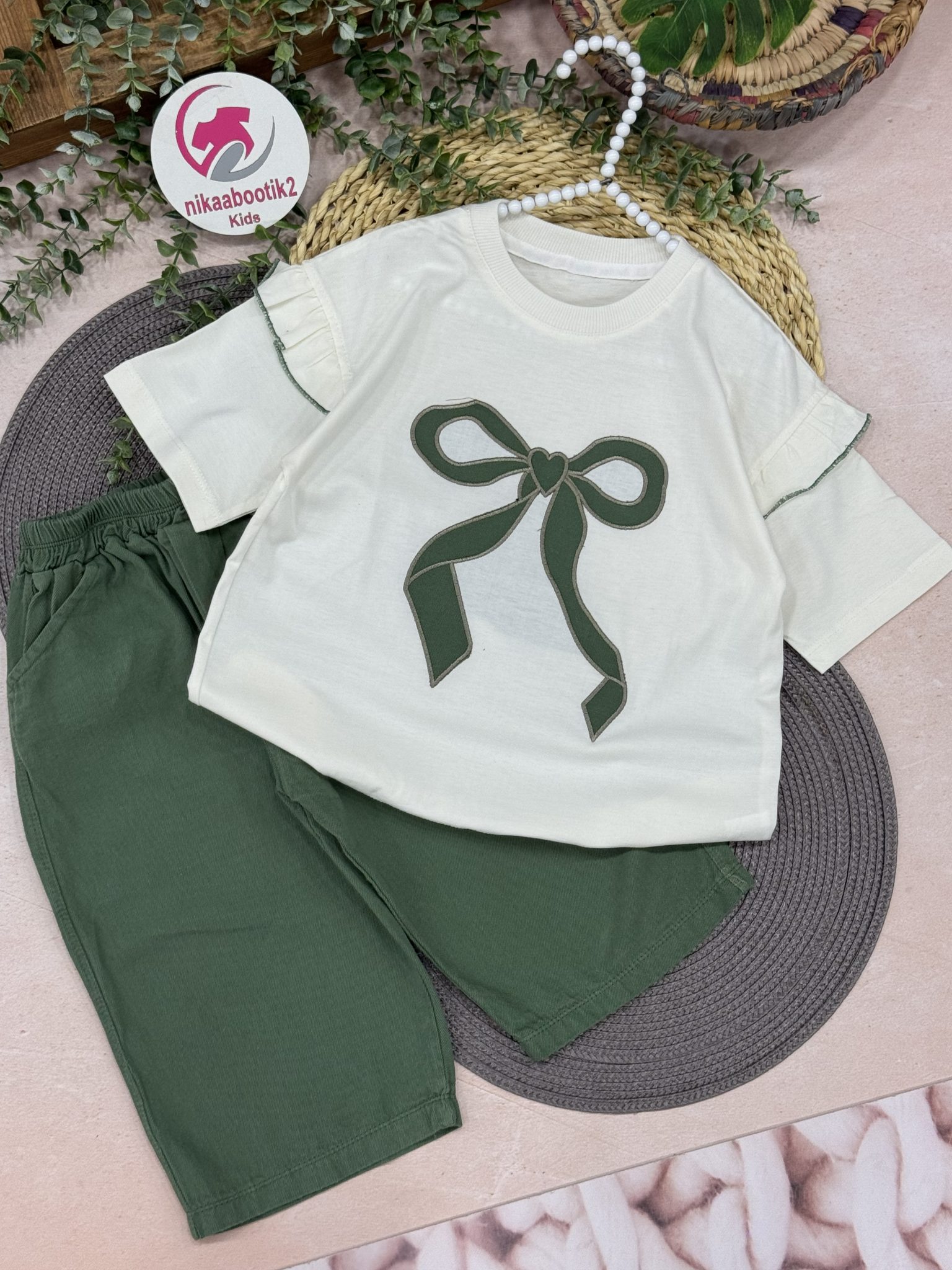 نیکابوتیک > فروشگاه > محصولات دخترانه > تیشرت شلوارک پاپیون قلبی(جدید)