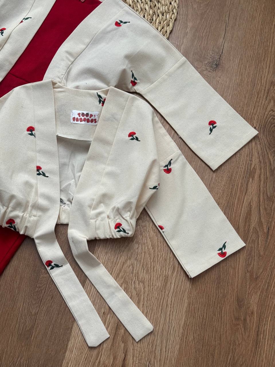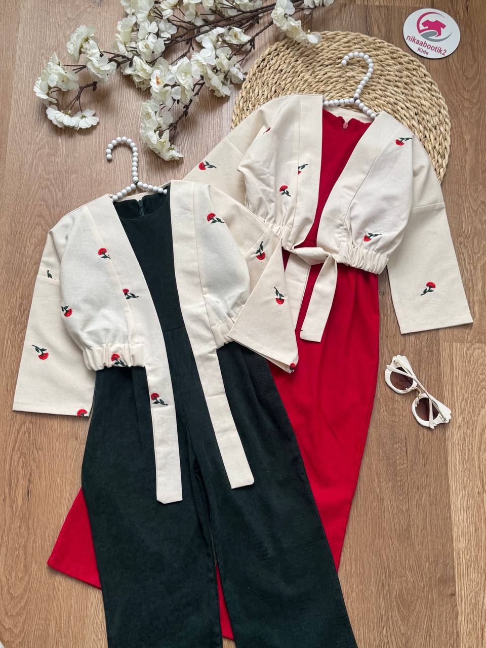 (آستین ها کیمونوئی طراحی شدهاند.)