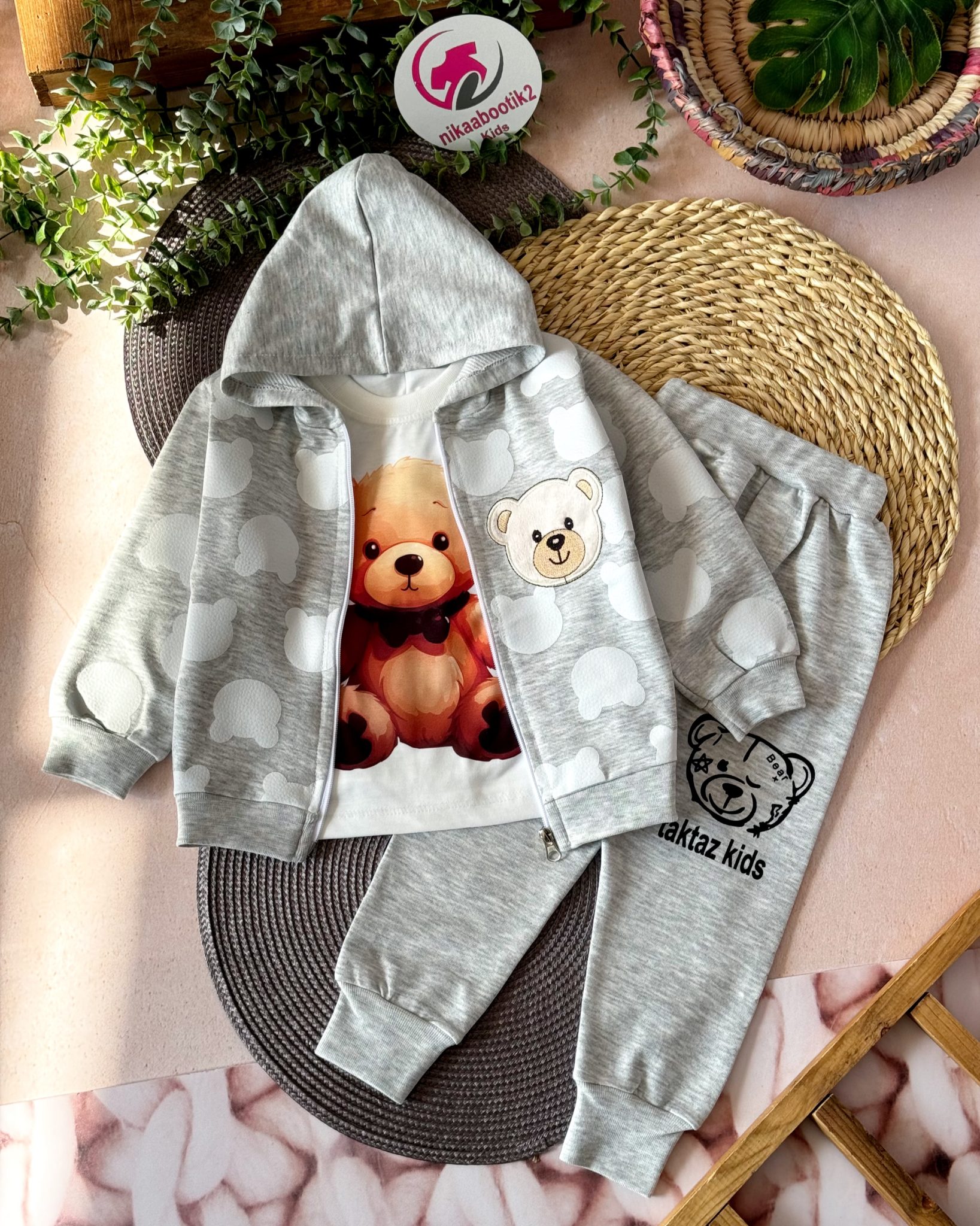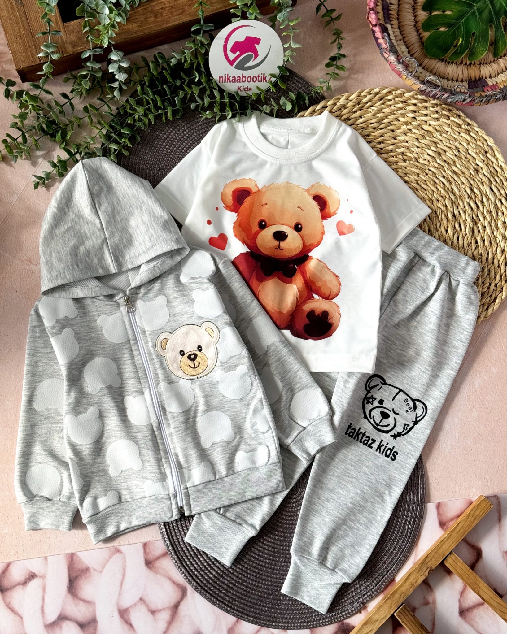 نیکابوتیک > فروشگاه > محصولات پسرانه > تیشرت شلوارک پسرانه > سه تیکه خرسی