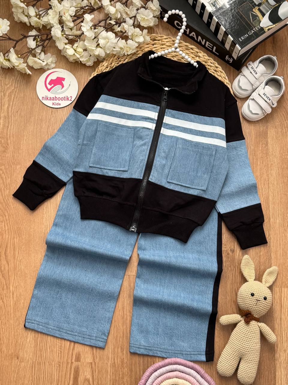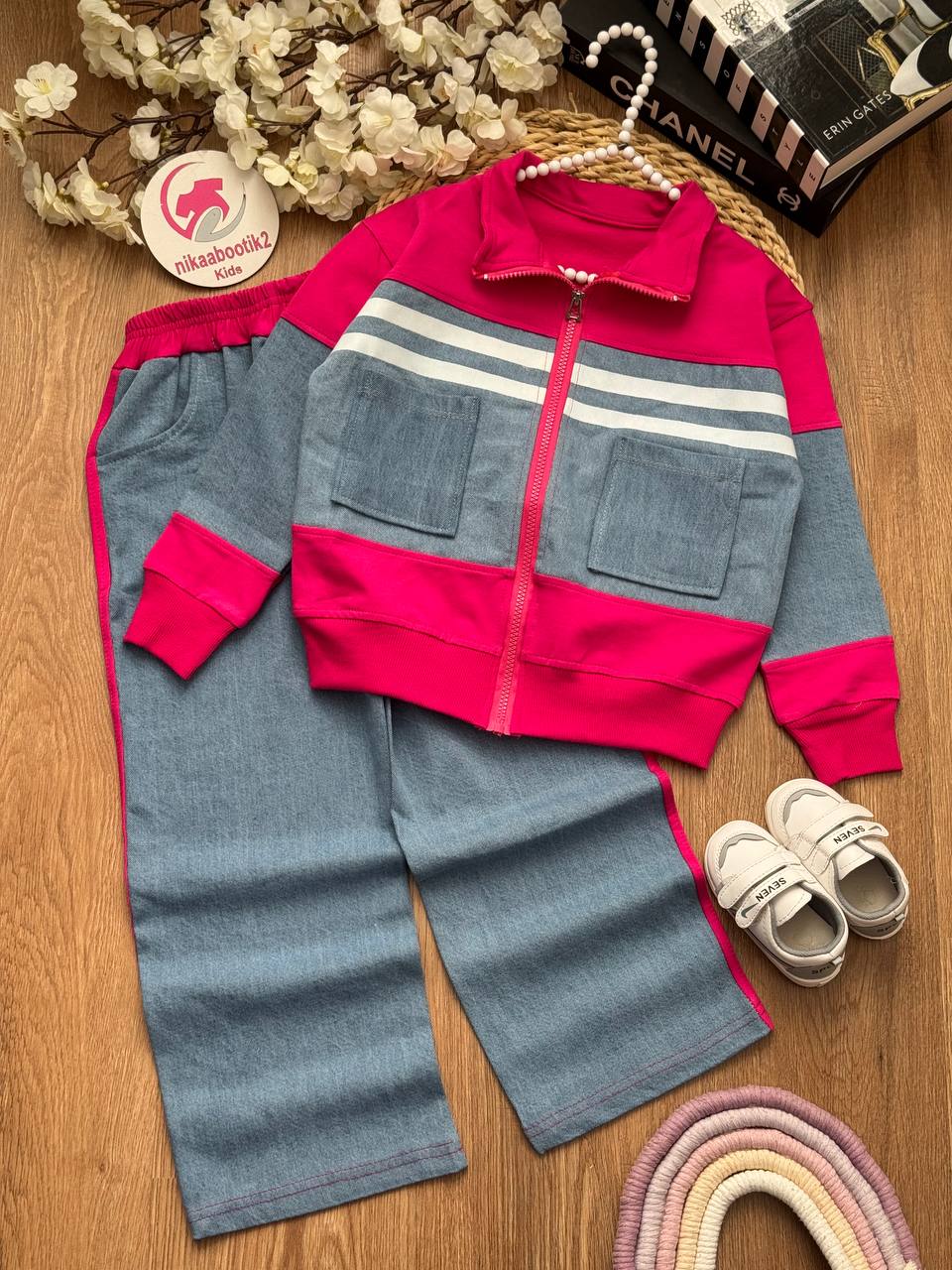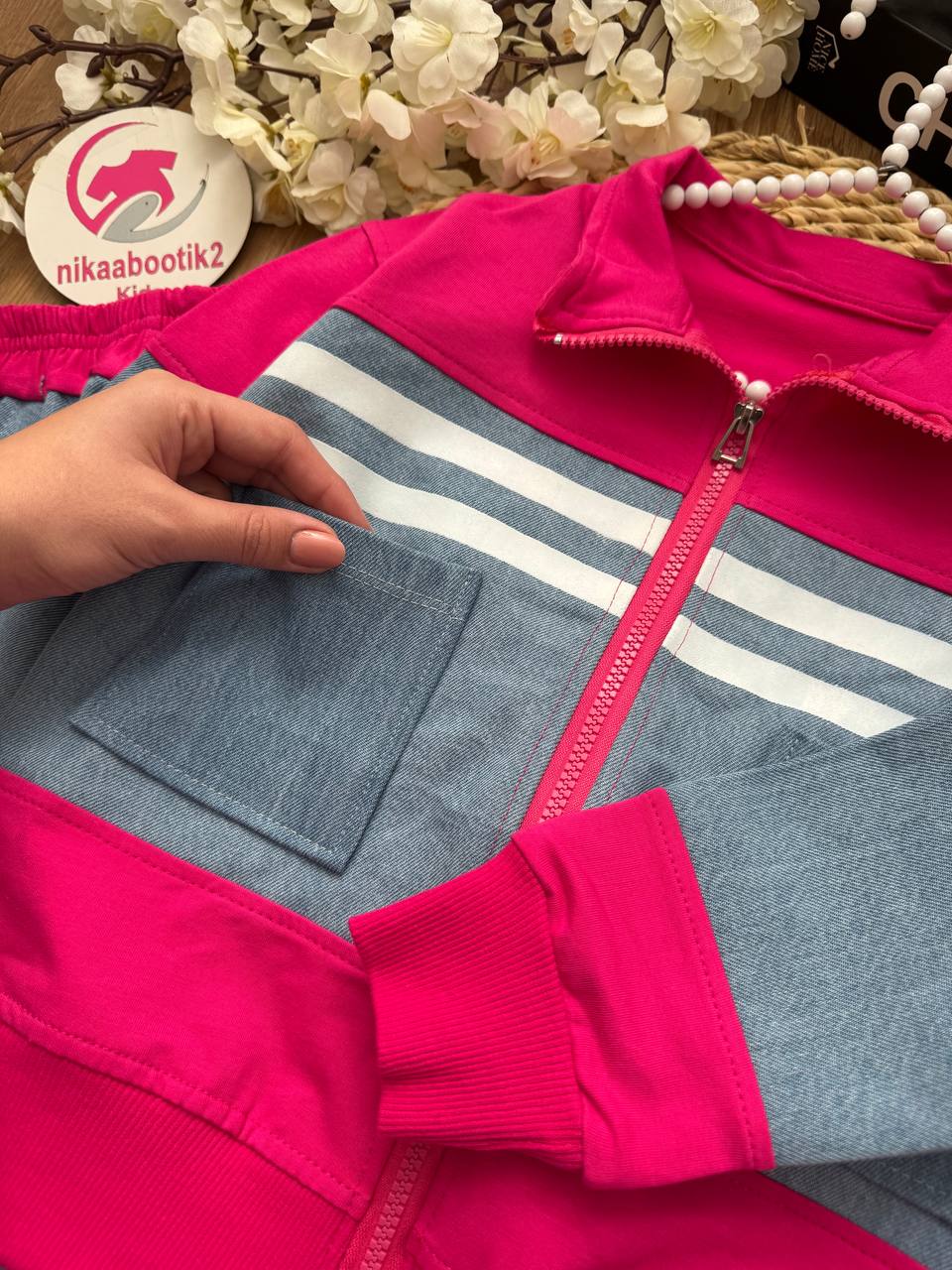 نیکابوتیک > فروشگاه > لباس دخترانه > سویشرت دخترانه > سویشرت شلوار نوار سفید