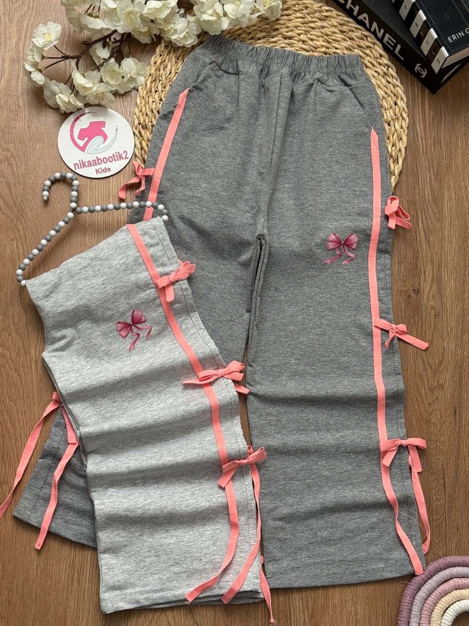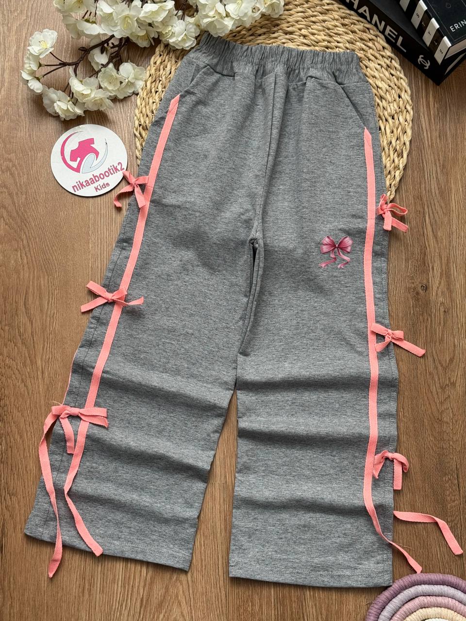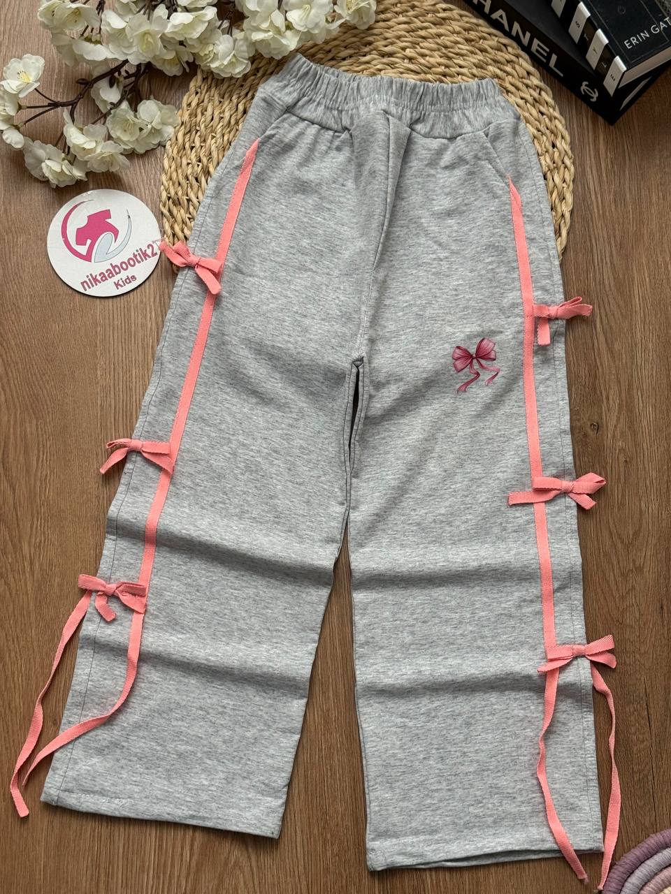 نیکابوتیک > فروشگاه > لباس دخترانه > شلوار دخترانه > شلوار بگ ملانژ پاپیونی