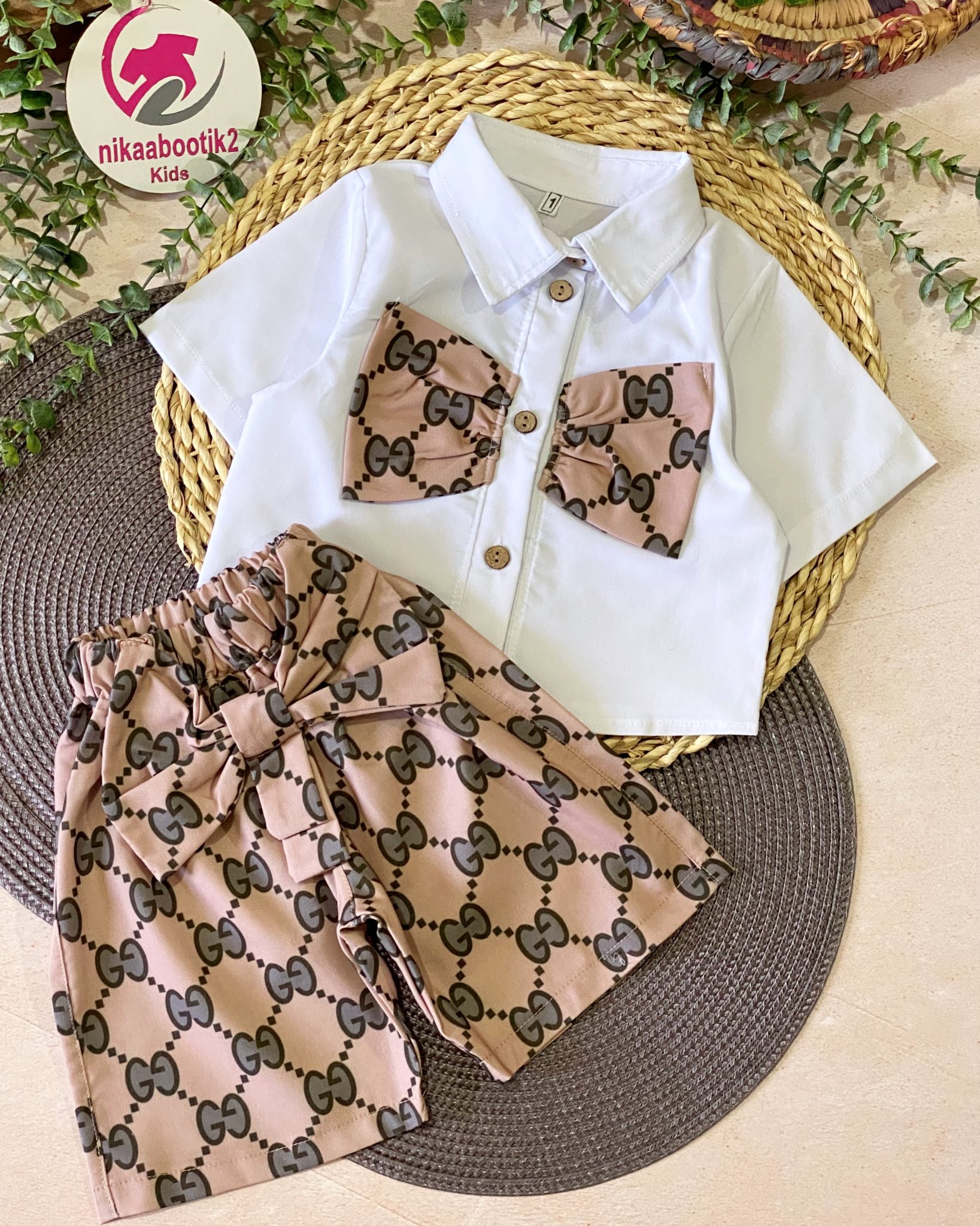 نیکابوتیک > فروشگاه > لباس دخترانه > شومیز شلوارک کتان گوچی