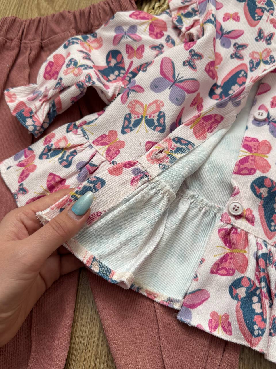 نیکابوتیک > فروشگاه > لباس دخترانه > بلوز شلوار دخترانه > شومیز شلوار مخمل پروانه
