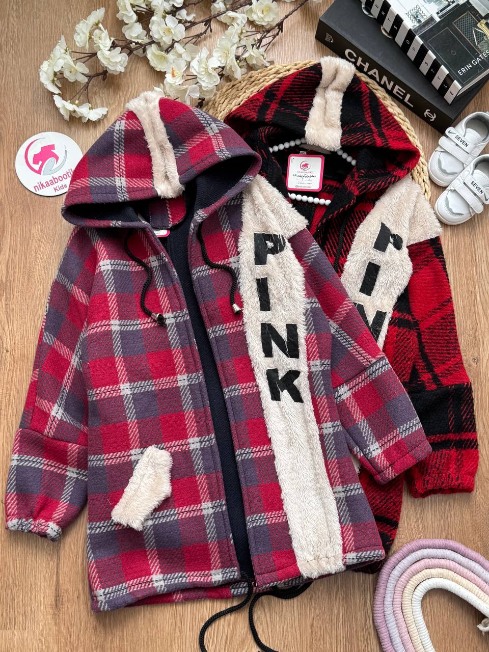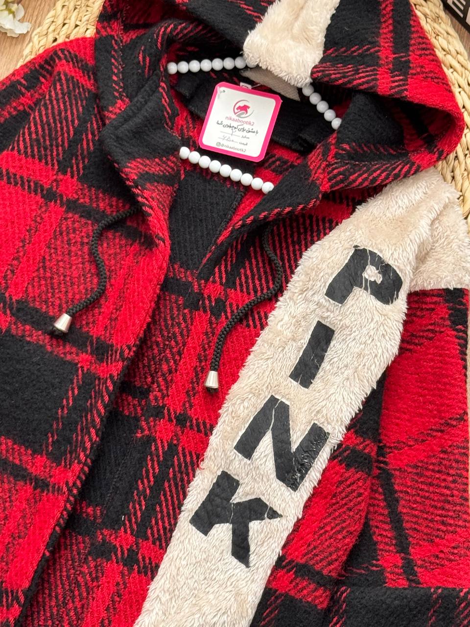نیکابوتیک > فروشگاه > لباس دخترانه > سویشرت دخترانه > شکت چهارخونه پینک (ایراددار)