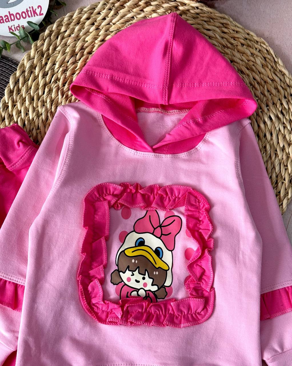 نیکابوتیک > فروشگاه > محصولات دخترانه > هودی شلوار دختر کلاه اردکی