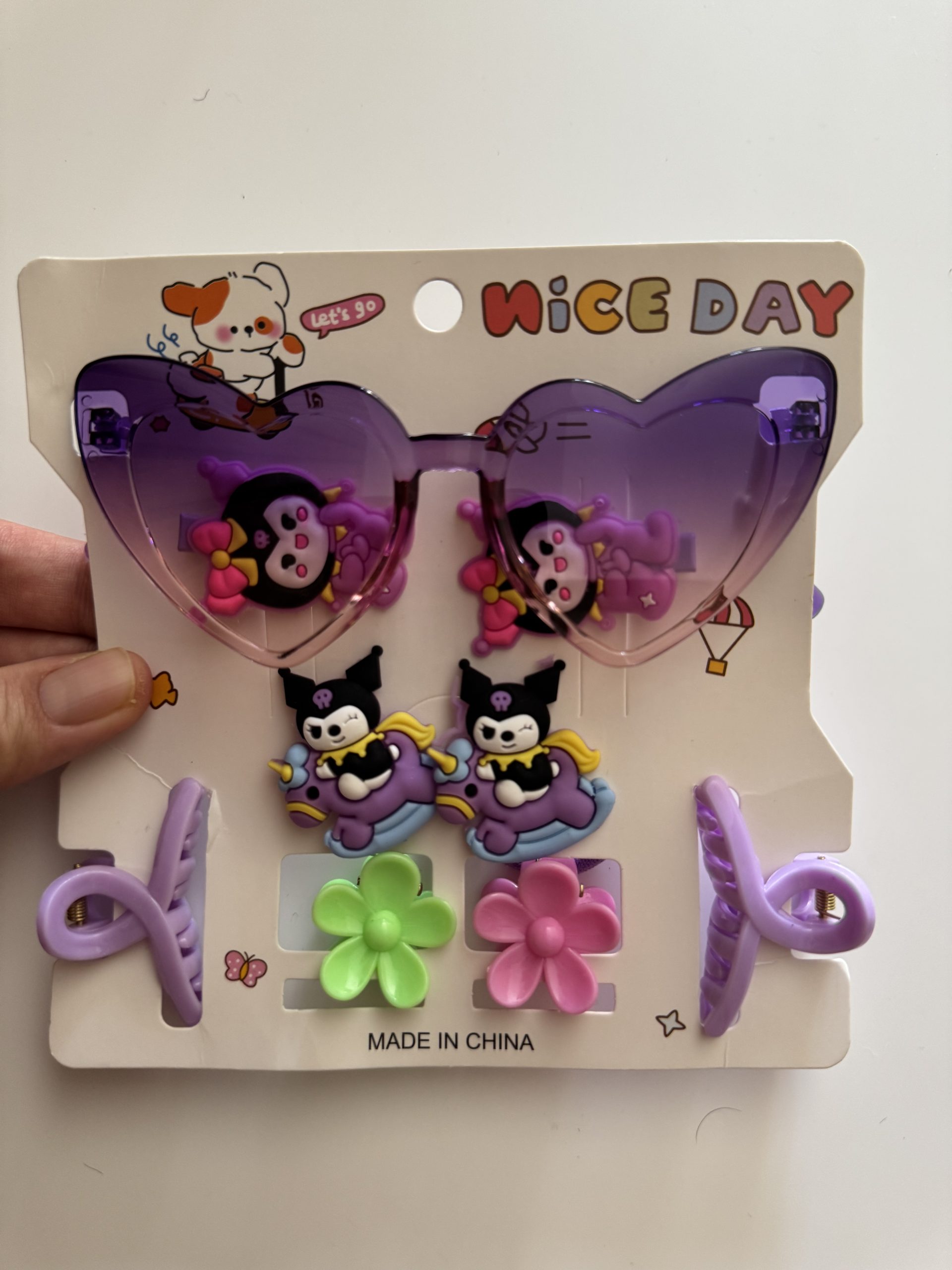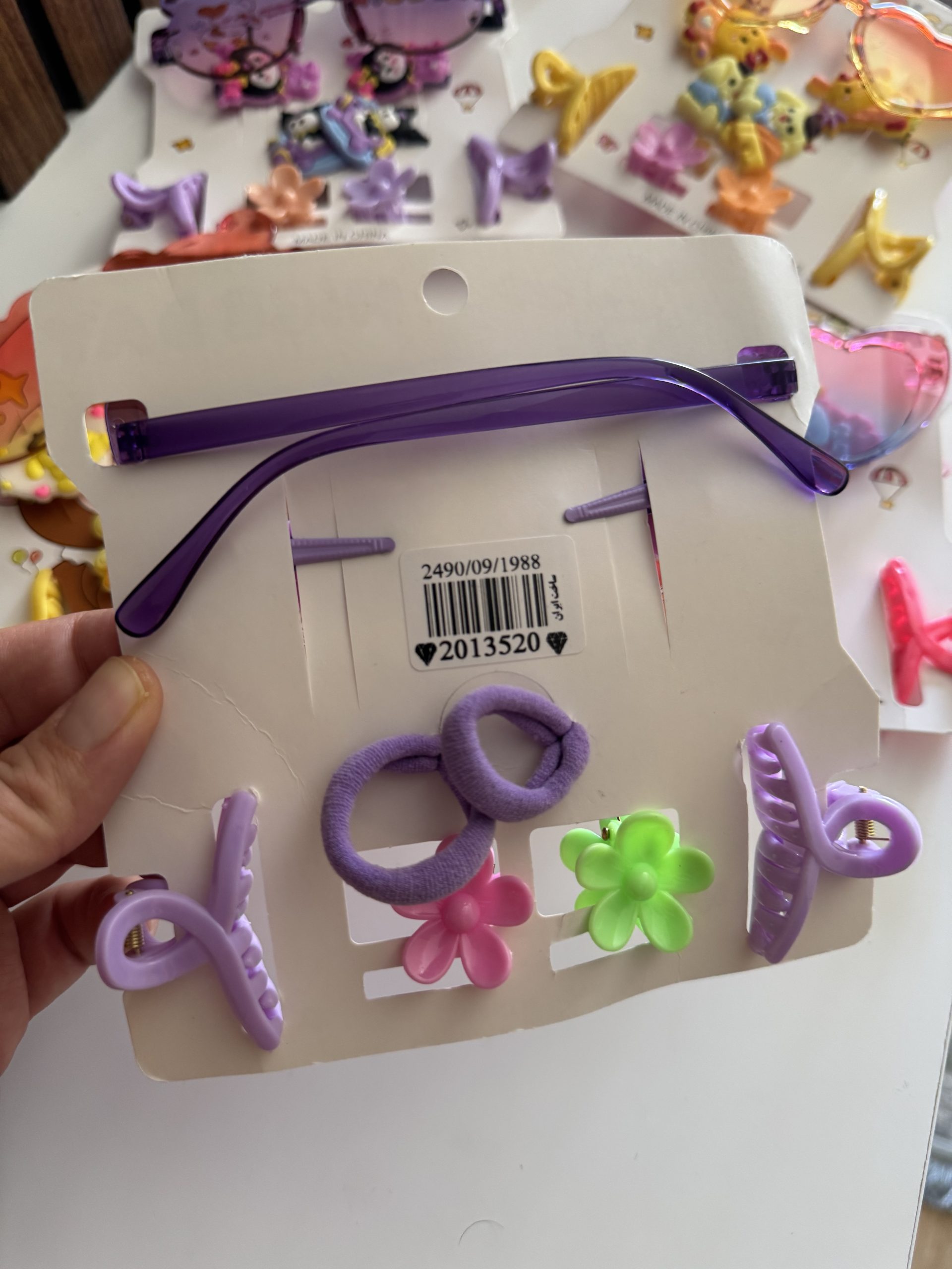 پک شامل عینک با کیفیت ،کلیپس در دو سایز، یک جفت گیره مو، یک جفت کش مو