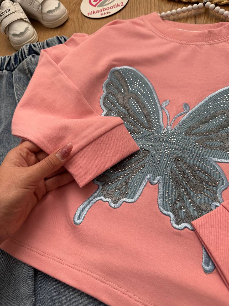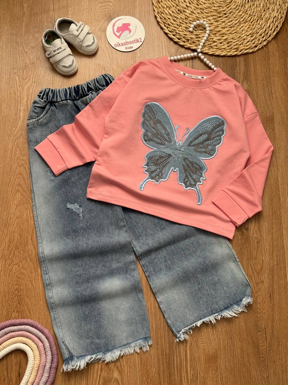 نیکابوتیک > فروشگاه > محصولات دخترانه > بلوز شلوار دخترانه > کراپ شلوار پروانه لی