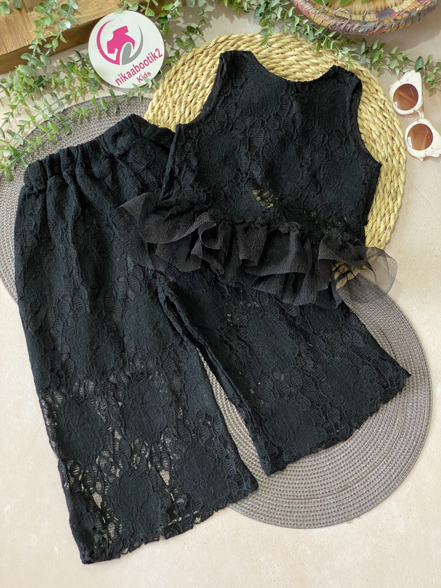 نیکابوتیک » فروشگاه » محصولات دخترانه » کراپ شلوار گیپور مشکی