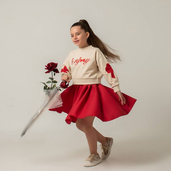 بلوز دامن پاپیون قرمزی